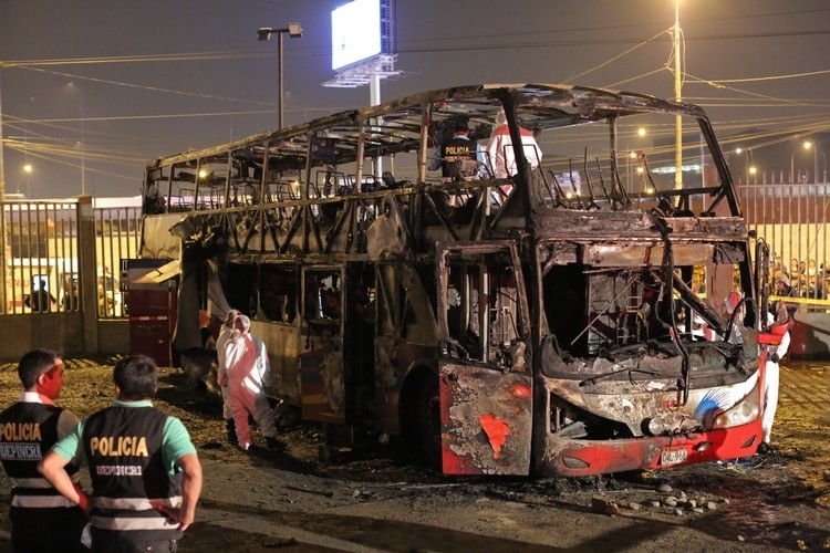 Al menos 20 personas fallecieron a causa de un incendio que consumió un autobús interprovincial en un terminal informal de la avenida Marco Polo en urbanización Fiori, en el distrito de San Martin de Porres, en la ciudad de Lima. El fuego consumió el camión de transporte público que estaba a punto de salir hacia la ciudad de Chiclayo. Hasta el lugar llegaron ocho unidades de los bomberos para atender la emergencia y según estimó Lewis Mejía, oficial del Cuerpo General de Bombero Voluntarios del Perú (CGBVP), presente en San Martín de Porres, hay al menos 20 personas muertas y 7 heridos que fueron trasladados de inmediatamente al hospital Cayetano Heredia. Las causas del incendio De acuerdo con información de los Bomberos gran parte de los fallecidos iban en el segundo nivel del autobús propiedad de la empresa “Sajy Bus”. Al parecer, todo habría empezado con una chispa que alertó a los pasajeros, quienes dieron rápido aviso pero no pudieron descender. "Es un autobús de servicio interprovincial con dos pisos que lamentablemente, por razones que son todavía motivo de investigación, se incendió. Inmediatamente unidades del cuerpo de bomberos han acudido al lugar y se encuentran trabajando ahí", indicaron las autoridades. Al parecer, las personas fallecieron debido a que no pudieron escapar de las llamas y quedaron atrapadas en el estrecho pasadizo y la escalera que conecta el primer y segundo piso del vehículo. Además, un bombero señaló que el bus no tenía los implementos de seguridad, como extintores a la vista.