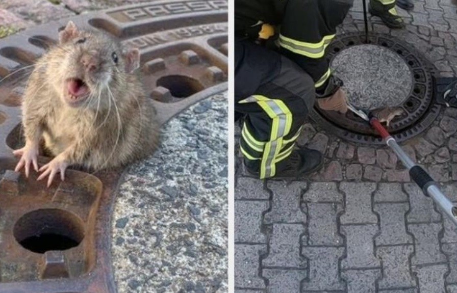 Una rata con unos kilitos de más quedó atrapada sola al querer salir por el agujero de la tapa de una alcantarilla ¿Qué pasó? Un gran grupo de bomberos se acercó para salvarla y filmó todo el proceso.