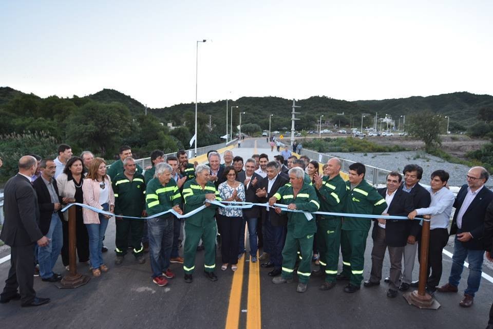 La Gobernadora Lucía Corpacci encabezó ayer por la tarde la inauguración del puente que une la Quebrada de Moreira con la Ruta Provincial Nº 1, en Banda de Varela, junto al intendente capitalino Raúl Jalil, y el jefe comunal de Fray M. Esquiú, Guillermo Ferreyra.