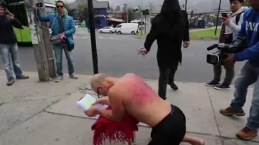 Este martes, el fotógrafo y dirigente sindical, Mauricio del Pino Valdivia, recibió 106 latigazos en las calles de Viña del Mar, como medida de protesta por el despido "injustificado" de la misma cantidad de profesores de la Duoc UC.