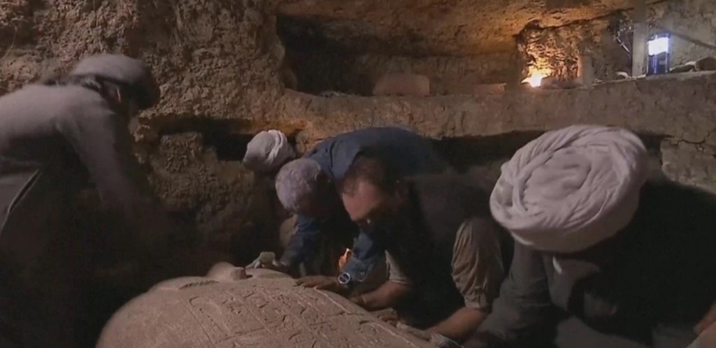 Un sarcófago de 2.500 años de antigüedad fue abierto este domingo en un programa de televisión en vivo durante un especial de dos horas del canal estadounidense Discovery.