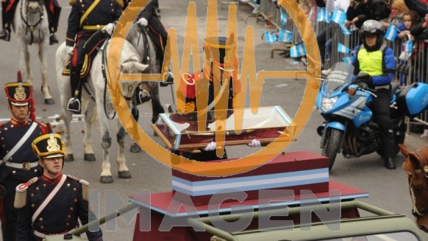 Sin embargo, desde lo simbólico, el evento del día es el traslado del Sable Corvo del General José de San Martín al Museo Histórico Nacional; hasta hoy se encontraba en el Regimiento de Granaderos de la ciudad de Buenos Aires. El acto comenzó minutos después de las 10.30 y finalizó poco después de las 14, cuando la presidente Cristina Kirchner lo depositó en una urna para que sea expuesto al público.