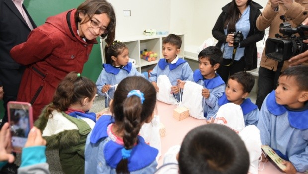 La gobernadora Lucía Corpacci inauguró en la mañana de hoy lunes, el nuevo edificio del jardín de infantes de la Unidad Institucional N° 1 ubicada en Ribera del Valle.