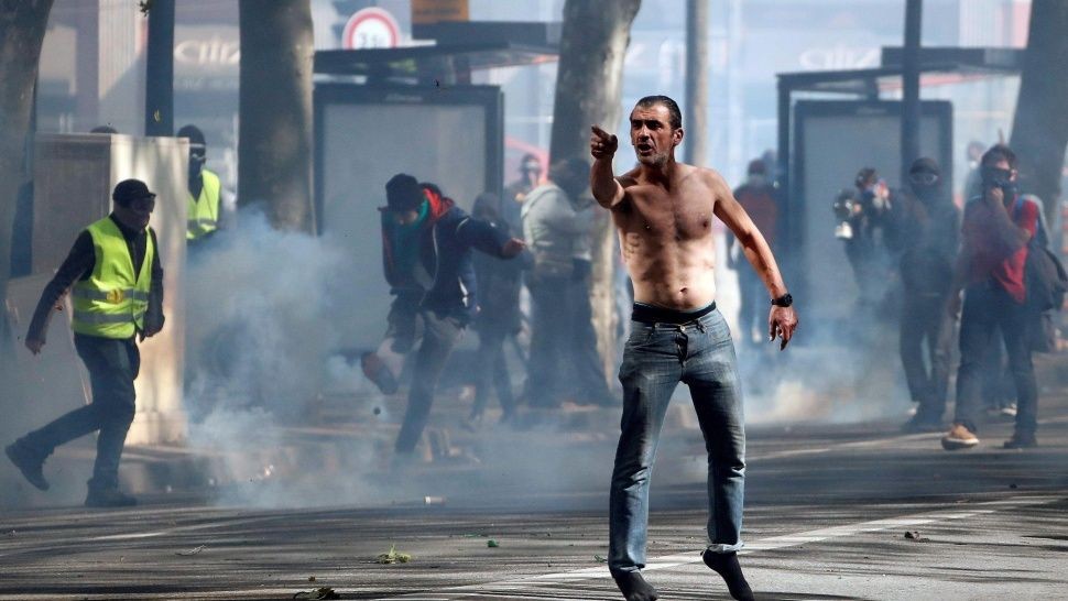 Mientras en algunas ciudades del interior del país, como Nantes, la tradicional manifestación de las centrales sindicales se realizó sin problemas, en Lyon miles de miembros del movimiento chalecos amarillos encabezaron las protestas y en varias partes de París, ocuparon puntos estratégicos de la tradicional marcha sindical y le imprimieron un tono beligerante que no suele tener.