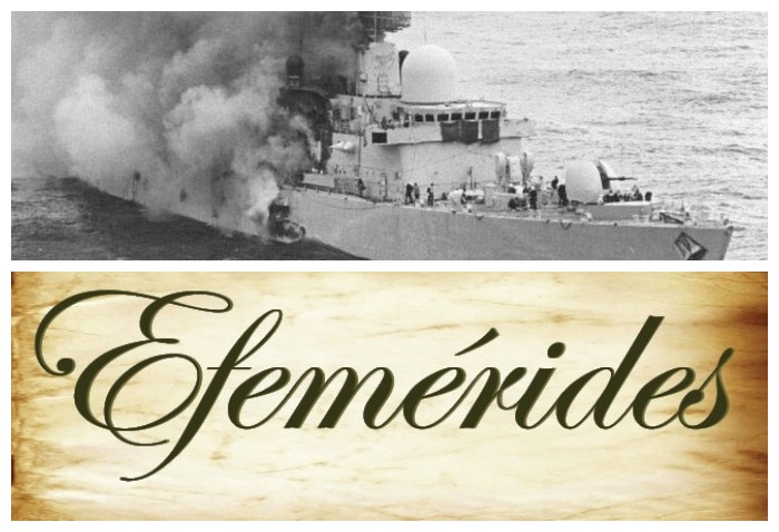El 4 de mayo de 1982, en el marco de la Guerra de Malvinas, un avión argentino hunde con un misil el destructor británico Sheffield, la nave más moderna de la flota. El misil era un Exocet de fabricación francesa y fue uno de los golpes más duros que recibió Gran Bretaña.