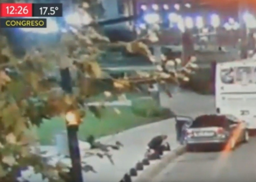 La escena fue captada por una de las cámaras de seguridad ubicada en la vía pública. En las imágenes se observa cómo se origina el atentado al legislador y a su acompañante Marcelo Yandón.