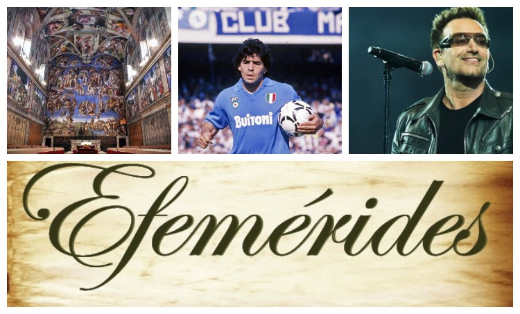 Miguel Ángel comenzó a pintar la Capilla Sixtina, nació Bono, líder de U2, y Maradona consiguió su primer título con el Napoli. Todo esto y más ocurrió un 10 de mayo.