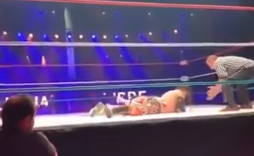Según se conoció a través de un video difundido en las redes sociales, el enmascarado -de 51 años y nombre verdadero César González- no pudo recomponerse luego de ser derribado con una patada por su oponente, Juventud Guerrera.