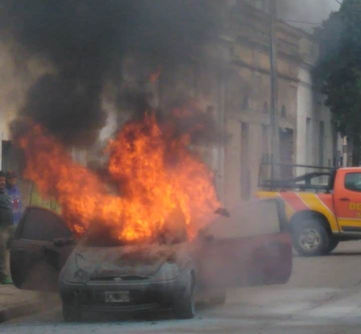 Allí en pleno centro, un automovil Ford K por una falla del rodado que aún falta precisar, comenzó a prenderse fuego no pudiendo su dueño evitar que pronto las llamas se apoderaran de todo el rodado. Asistieron Bomberos para sofocar las llamas, que lamentablemente ocasionaron un daño irreversible al automóvil.