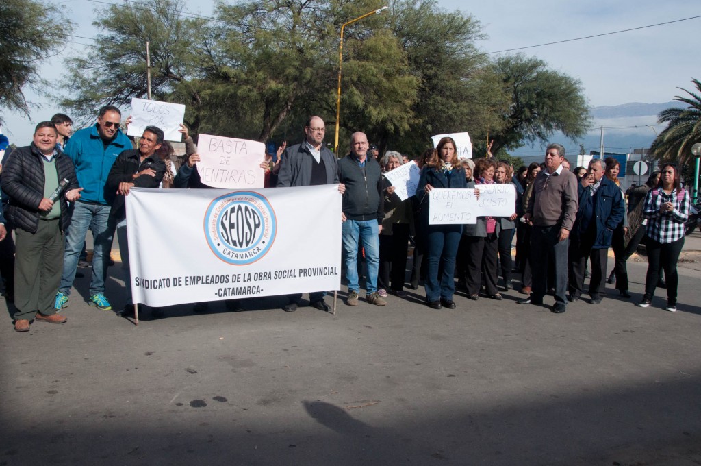 Con bombos y pancartas, los empleados agremiados en SEOSP, continuaron con la medida de quite de colaboración por seis horas. Ayer, se sumó un corte de tránsito en la rotonda de la avenida Presidente Castillo por un lapso de 30 minutos.