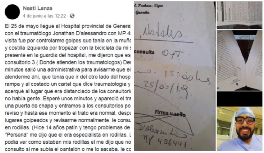 El acusado tiene 30 años y sigue trabajando en el centro asistencial. La joven asegura el sujeto, identificado como D´Alessandro, fingió revisarle las rodillas para terminar introduciendo uno de sus dedos en su vagina