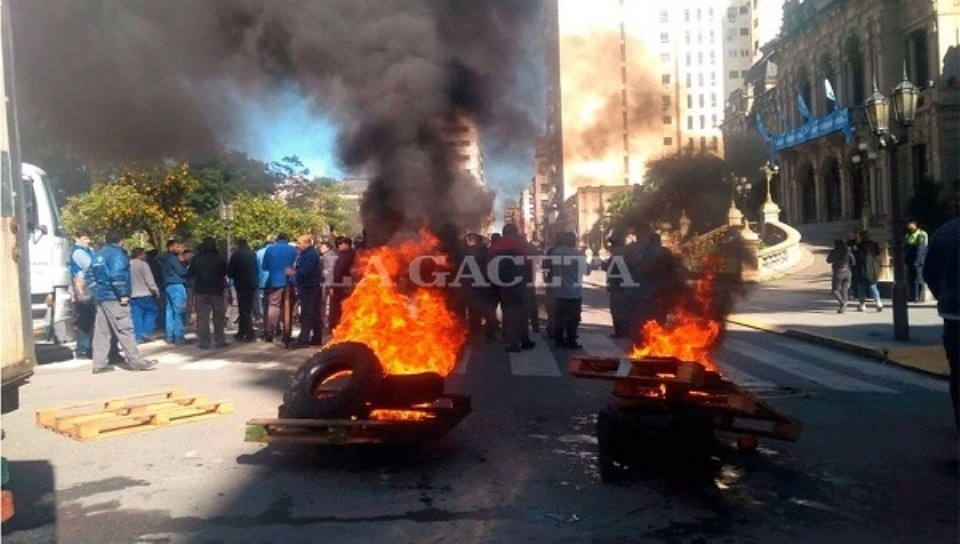 Empleados del supermercado Emilio Luque protestaron esta tarde en la esquina de 25 de Mayo y San Martín, frente a la Casa de Gobierno de Tucumán. También se manifestaron en la intersección de 24 de Septiembre y 25 de Mayo y, en San Martín y Laprida.