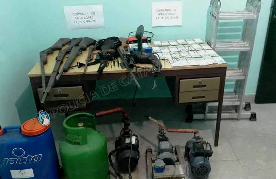 Tras irrumpir en la vivienda, bajo las directivas del Juzgado de Control de Garantías N° 3, a cargo del Dr. Ramón Porfirio Acuña, los policías incautaron tres bombas de agua, marcas Gamma y Volcang, una garrafa de gas verde de 10 kilos, un taladro negro marca Skil, la suma de dos mil quinientos pesos en efectivo, una sierra caladora marca Black and Deker, de color anaranjado, un taladro inalámbrico verde, marca Bosch, con su respectivo estuche, un prolongador de corriente, una pistolera con cinto de galón negro, un revólver Cal. 32 mm., marca pucará, dos rifles de aire comprimido, una caravina Cal. 22 mm., modelo 62 juvenil Diana, una escopeta cal. 16 mm., marca Centauro modelo 30, un rifle de abancarga, un cargador con seis cartuchos, un cinturón de tela con ocho cartuchos calibre 32 mm., y una mochila fumigadora, marca Jacto, de colores azul y anaranjado, con sus respectivos accesorios, que quedaron a disposición de la Justicia interviniente, desde donde se indicaron las medidas a seguir.