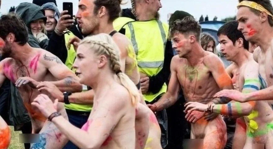 La carrera nudista llamada “Naked Run” forma parte del Festival de Roskilde en Dinamarca. El evento sucedió antes de que los artistas musicales Robyn, Wu-Tang Clan, Vampire Weekend y Underworld presentarán su show el viernes en el escenario principal.