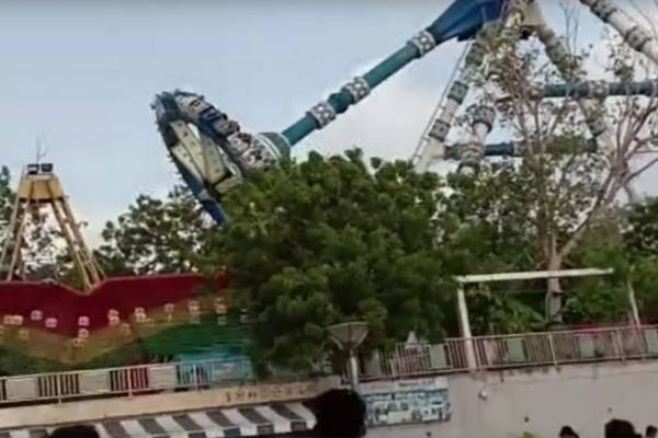 El terrible instante en que un juego mecánico se desplomó y provocó la muerte de dos personas en la India