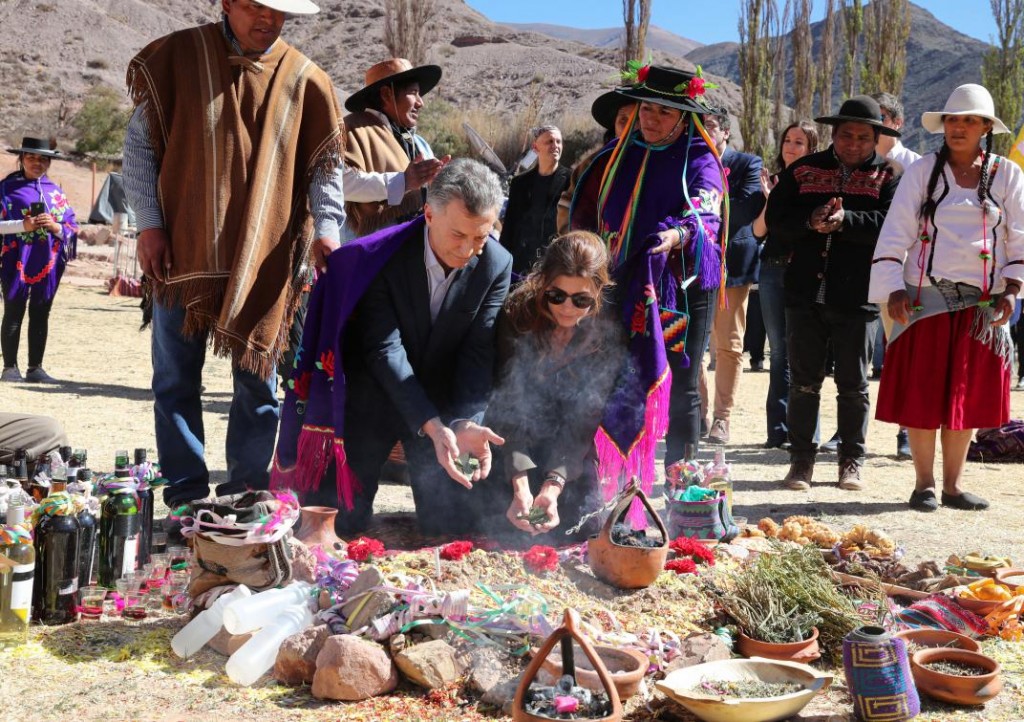 El presidente Mauricio Macri participó de la ceremonia de la Pachamama en la localidad jujeña de Purmamarca, donde pidió a la madre tierra "que podamos salir adelante construyendo esta Argentina en paz, armonía y con trabajo para todos".