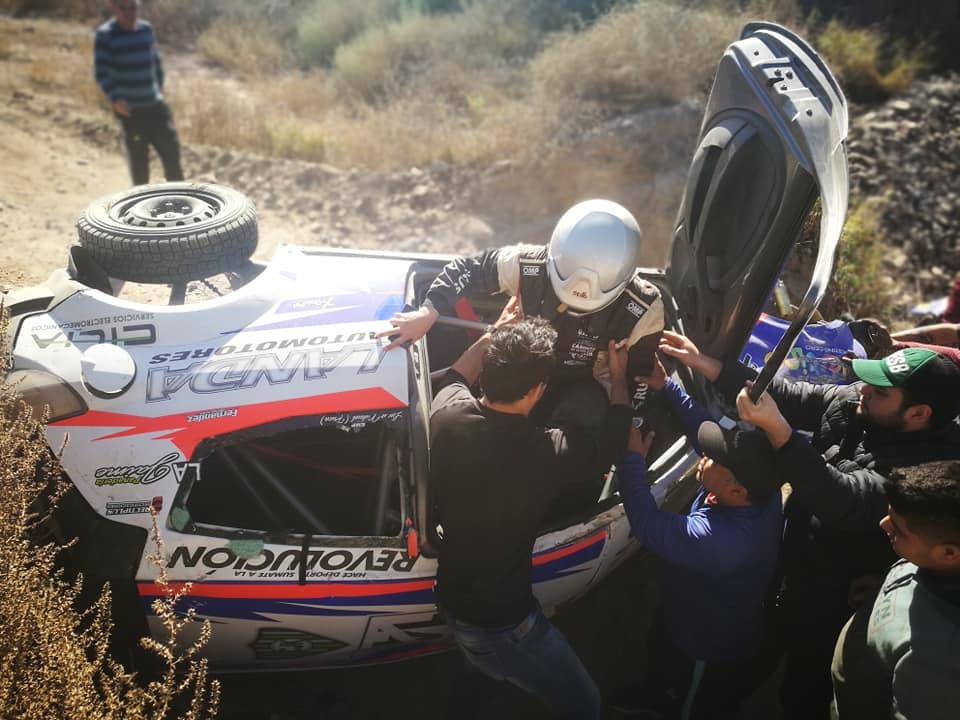 En el primer día del “Rally del Poncho”, en la Quebrada de Moreira, dos corredores sanjuaninos protagonizaron un espectacular vuelco en medio de la carrera.