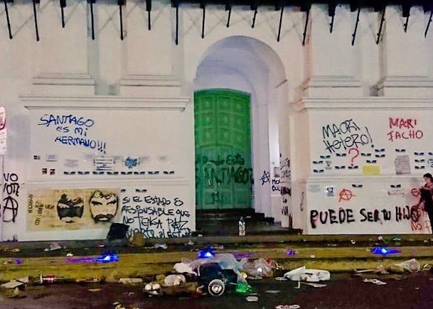 El jueves se llevó a cabo una movilización en plaza de Mayo por la muerte de Santiago Maldonado. Hubo destrozos y pintadas en el Cabildo.