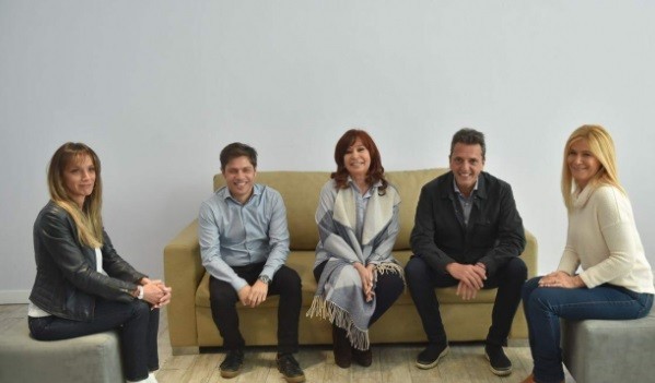 En tanto, la esposa del ex intendente de Tigre, Malena Galmarini; y la intendenta de La Matanza y postulante a vicegobernadora Verónica Magario quedaron sentadas, a los costados, en dos otomanas grises.