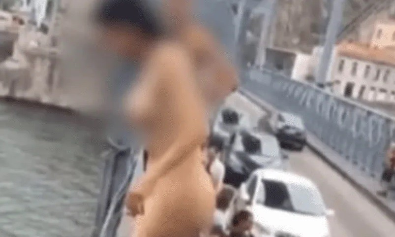 En la grabación se puede apreciar a una chica de Oporto, Portugal, quien se sacó la ropa con cierta dificultad, y tras lograr mantener el equilibrio sobre el puente, se arroja con dirección al río Duero.