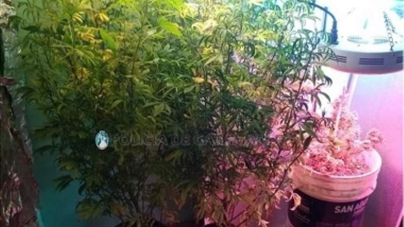 Donde secuestraron 5 plantas de Marihuana que estaban siendo cultivadas en un vivero casero, $6.800, 3 frascos con cogollos de Marihuana, 3 celulares, 1 cinta de embalar, y 1 balanza de precisión.