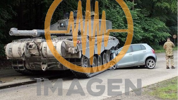 El conductor del tanque reconoció que no tuvo tiempo de frenar, aunque pudo girar el blindado de 62 toneladas de manera tal que no impactara contra la joven, que resultó ilesa. Su Toyota no corrió con la misma suerte y terminó con todo el frente destruido.