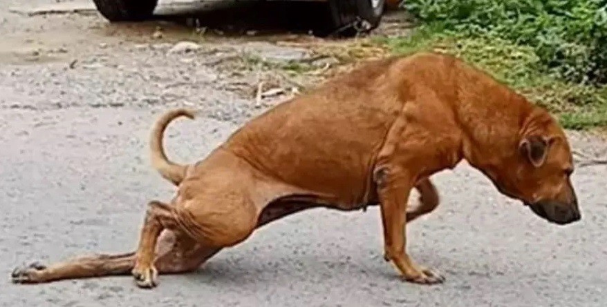 Movidas por lástima, las personas se acercan a él, lo acarician y le dan de comer. Sin embargo, una vez que lo abandonan, el can retoma su actividad normal y camina con sus cuatro patas.