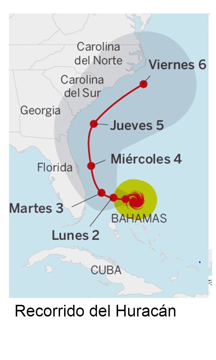 Al mediodía, hora local, Dorian estaba a 120 kilómetros al este de Freeport, en la isla Gran Bahama, y estaba desplanzándose hacia el oeste, informó el NHC. Allí, miles de personas fueron evacuadas para alejarse de la furia del huracán, mientras que el número de víctimas fatales aún no está establecido.