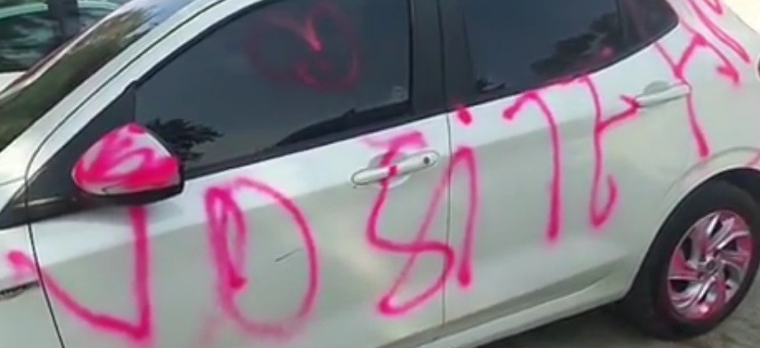 Un automóvil blanco con leyendas pintadas con aerosol rosa, se volvió viral ayer después de que un vecino de La Banda retratara el estado en el que había quedado el vehículo. Según se interpretó de los mensajes, se trataba de un desamor. Hasta anoche, no se había radicado denuncia alguna por el hecho.