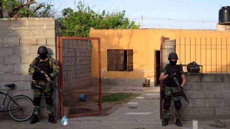 El allanamiento fue concretado por efectivo de la División Drogas Peligrosas de la Policía de la Provincia, Grupo Kuntur y personal femenino de la Guardia de Infantería, bajo las órdenes del Juzgado Federal.