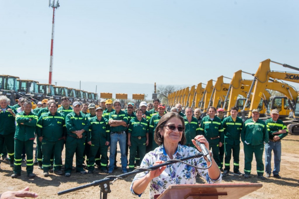 En el predio del CAPE, la gobernadora Lucía Corpacci, junto al ministro Rubén Dusso, encabezó el acto de entrega de 52 máquinas que se destinarán a Vialidad Provincial y Recursos Hídricos. Estas fueron adquiridas por el Ministerio de Obras Públicas mediante la Licitación Pública 05/90, con una inversión de 6.449.800 dólares.