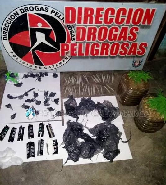 Tras irrumpir en viviendas del Barrio El Monumento, ubicado en la calle Mitre S/N', y en la calle Artaza S/N', de la Ciudad de Belén, Departamento homónimo, propiedad de las familias Cruz, Ignes y Sorovigarat respectivamente, con la colaboración de personal del Grupo Antinarcóticos de Unidades Regionales (GAUR) de Belén, Tinogasta, Andalgalá y Santa María, los investigadores incautaron gran cantidad de cigarrillos de armado casero y dosis de Marihuana listas para ser comercializadas, dos plantines de la variedad Cannabis Sativa, de unos 15 cm. aproximadamente, que estaban siendo cultivados, elementos para fraccionar la sustancia estupefaciente, tres teléfonos celulares de distintas marcas y modelos, y una importante suma de dinero en efectivo, discriminada en billetes de distinta denominación.