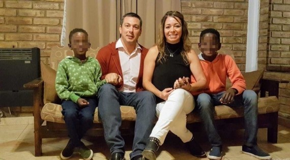 Marianela y Gustavo, junto a los dos niños africanos (Foto: La Provincia).