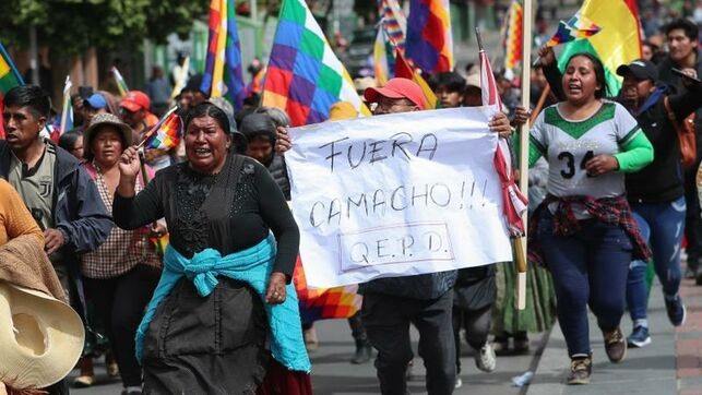 Los manifestantes portaban wiphalas (banderas multicolores del movimiento indígenas) y algunos de ellos palos, y avanzaron pacíficamente por el centro de La Paz y se instalaron en la plaza mayor San Francisco. Identificados con el Movimiento al Socialismo (MAS) de Morales, fueron frenados por un cordón policial desplegado en el ingreso a plaza Murillo, frente a la Asamblea Legislativa.
