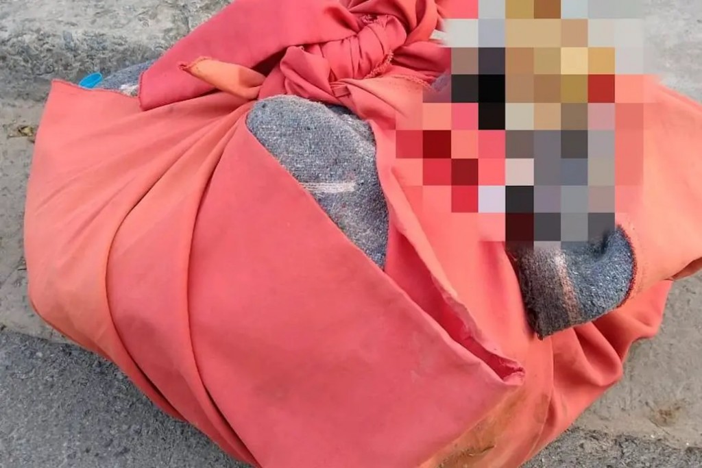 Fueron los vecinos los que advirtieron un bulto en plena calle y junto al cordón de la vereda, empaquetado con frazadas y una sábana roja desteñida, del que sobresalía un pie.