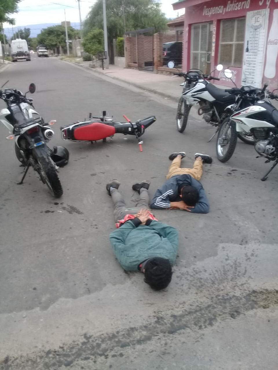Alrededor de las 8:00, cuando efectivos apostados en una calle interna del barrio Eva Perón le hicieron seña al conductor de una moto en la que viajaban dos personas para que detuvieran la marcha y sea identificado, el conductor giró en U y se dió a la fuga iniciándose una persecución que finalizó varios metros más adelante. Según la policía, cuando escapaban, el conductor realizó una brusca maniobra que le hizo perder el control del rodado y cayó al pavimento junto a su acompañante. Allí, fueron inmediatamente detenidos por los efectivos que lo seguían, trasladándolos a la Comisaría Séptima. Posteriormente, los sujetos fueron alojados en la dependencia policial y tomó conocimiento la fiscalía de turno, desde donde se impartieron las medidas a seguir.