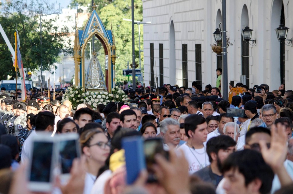 Alrededor de las 18.00, la sagrada imagen fue trasladada, en su trono dorado, hasta el atrio de la Catedral Basílica, para recibir el saludo de miles y miles de devotos. Los pañuelos al viento, millares de teléfonos celulares tomando fotos y videos de esos momentos históricos, el repicar de las campanas del Santuario, las lágrimas cubriendo los rostros, los vivas a la Virgen y a su Santísimo Hijo Jesucristo marcaron fuertemente el comienzo de esa manifestación pública de fe cristiana, que se extendió durante el resto de la tarde.