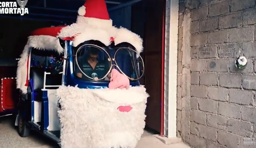 Don Jerónimo es el dueño de este inusual vehículo que con luces navideñas y simulando tener un gorro de Papá Noel en la cabecera del mototaxi, pasea a niños y familias por distintas calles.