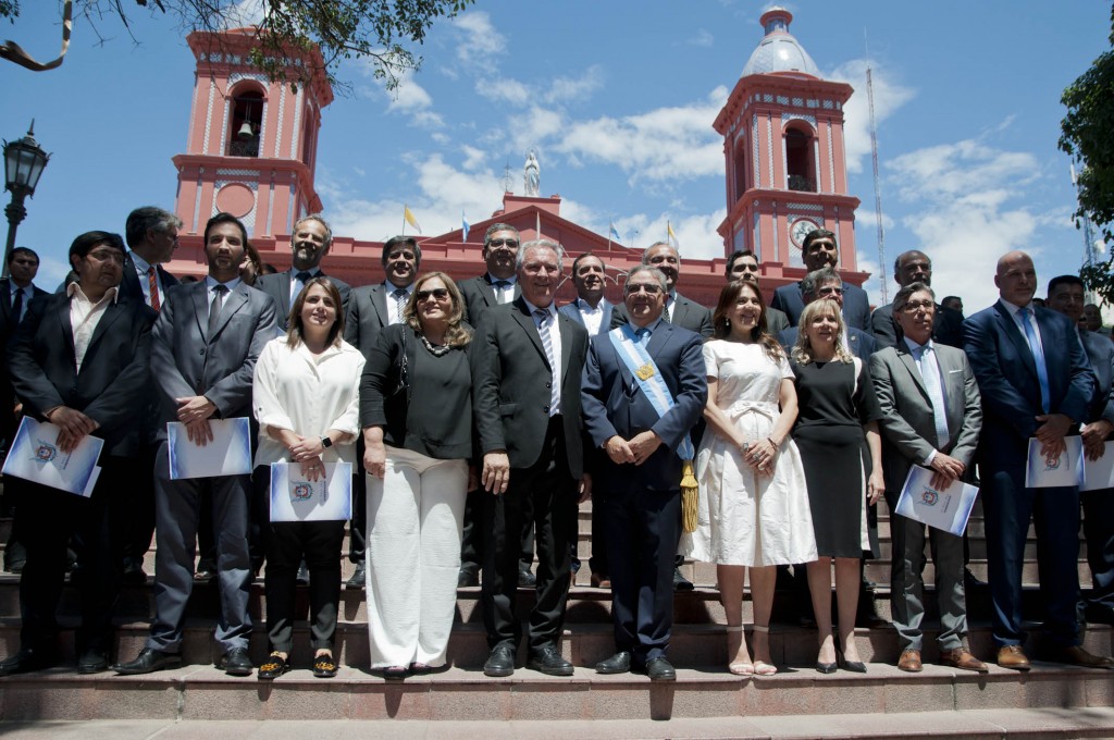 Tras el traspaso de mando en el Cine Teatro Catamarca, el gobernador Raúl Jalil tomó juramento en la plaza 25 de Mayo a los funcionarios que integrarán su gabinete central.