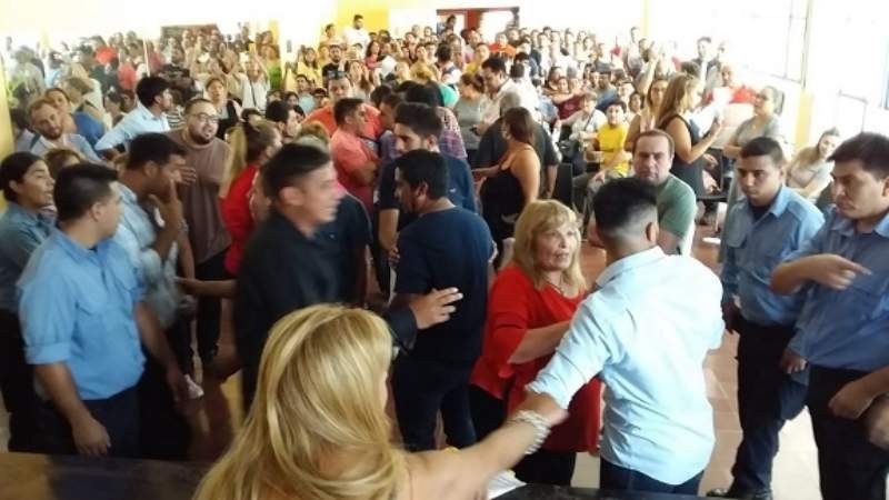 En el plenario, con ánimos caldeados, los asambleistas de uno y otro sector, cruzaron acusaciones y en determinado momento debió intervenir la policía debido a la virulencia de los reclamos.