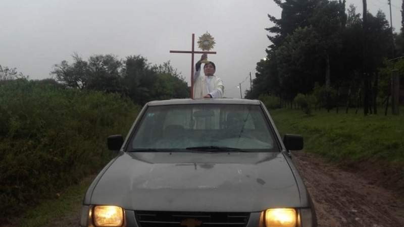 El lunes, en horas de la tarde, el sacerdote salió con el Santísimo Sacramento por algunas comunidades de la parroquia, como Tintigasta, Guayamba, Villa de El Alto, La Cañada, entre otras. El recorrido fue acompañado por la lluvia. Los fieles participaron desde sus hogares con una vela encendida ante la Imagen de la Santísima Virgen María y la Cruz. Emocionados, saludaban al Santísimo Sacramento en su paso por el lugar. El recorrido se inició a las 18:00 en Tintigasta y culminó pasadas las 22:30, en la Villa de El Alto.
