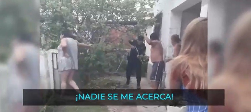 Un joven de 23 años iba salir a realizar una serie de compras pero la policía lo interceptó y le ordenó que ingresara a su domicilio. En el video, se puede ver al oficial Ruiz, quien es el acusado de ejercer las medidas más violentas hacia la familia.   Se lo puede ver con su arma en la mano, gritando. Además, le ordena a quien filma que deje de hacerlo, algo que no está prohibido. Es más, a veces es útil para registrar este tipo de accionar innecesario por parte de las fuerzas de seguridad.   Según denunció la familia, el policía le apuntó el arma al hijo menor, de 16 años, y golpeó a los padres, con un par de "cachetadas".   Finalmente, los policías detuvieron al joven por desacato y resistencia a la autoridad. La familia advirtió que realizará una denuncia contra los policías.   FUENTE:https://www.cba24n.com.ar/