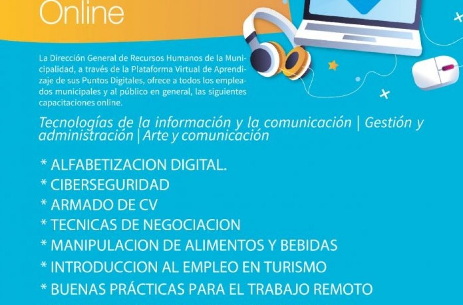 La Dirección General de Recursos Humanos, dependiente de la Secretaría de Gobierno y coordinación de la Municipalidad de la Capital, a través de sus puntos digitales, pone a disposición de todos los empleados municipales y del público en general los siguientes cursos a través de su plataforma de aprendizaje virtual.