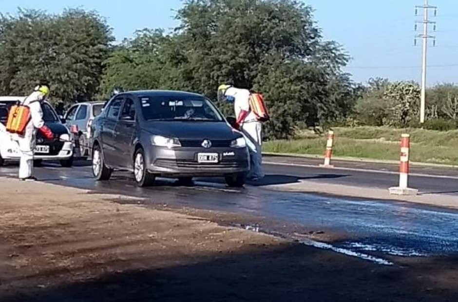 Los brigadistas, adecuadamente equipados, trabajan en los espacios más concurridos del centro y también en el acceso a la ciudad, donde desinfectan los vehículos que van a ingresar al área urbana.