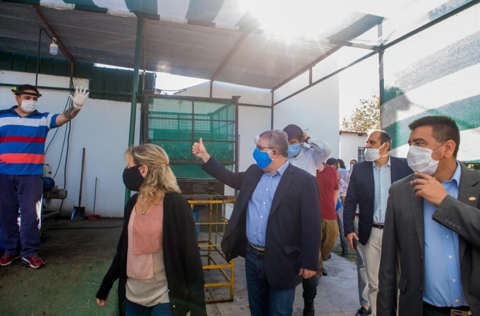 La recorrida oficial incluyó una visita a las plantas productoras de aceite de oliva y aceitunas de la ciudad de Pomán, donde se mantiene la producción bajo estrictas medidas sanitarias.