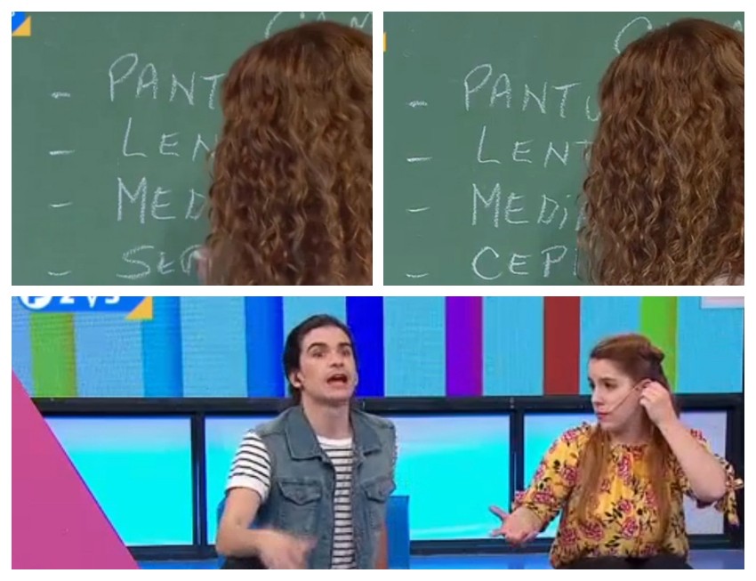 Por su parte, el encargado de dirigir programa, ordenó un cambio de cámaras y se enfocó a Baldi y Vila. Luego, se volvió a enfocar el pizarrón donde García se percató de la situación y borró rápidamente el error. Segundos después, la docente escribió correctamente la palabra.