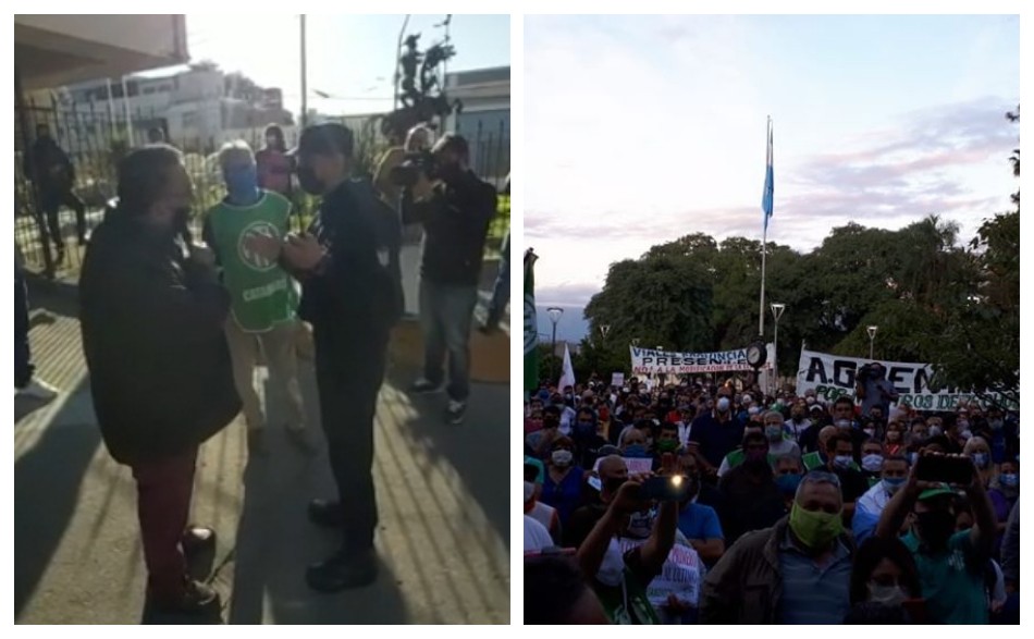 En el video se puede ver lo que sucedia esta mañana el cruce de palabras entre Juan Godoy (Suteca) y perdonal policial.