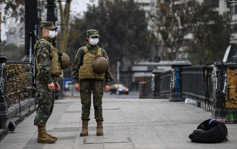 Con un nuevo récord de decesos y en un clima de ascendente tensión social, soldados chilenos custodian las calles de Santiago Fuente: AFP