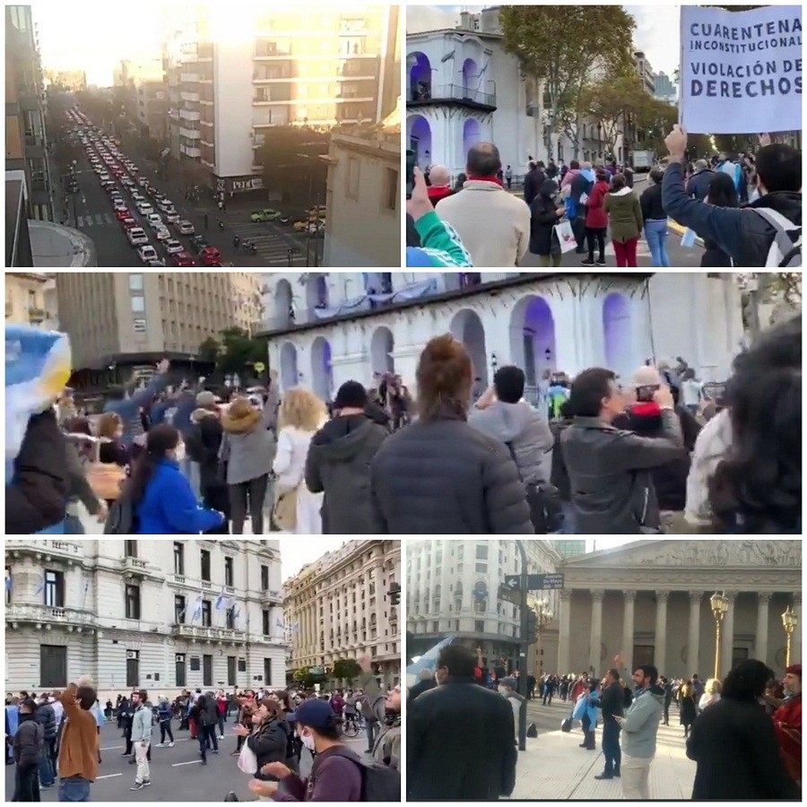 Esta hipótesis se vio reforzada pocos minutos después cuando algunos manifestantes dispersos se hicieron presentes en el Obelisco con el objetivo de criticar el aislamiento social, preventivo y obligatorio dictado por el Gobierno el 20 de marzo.