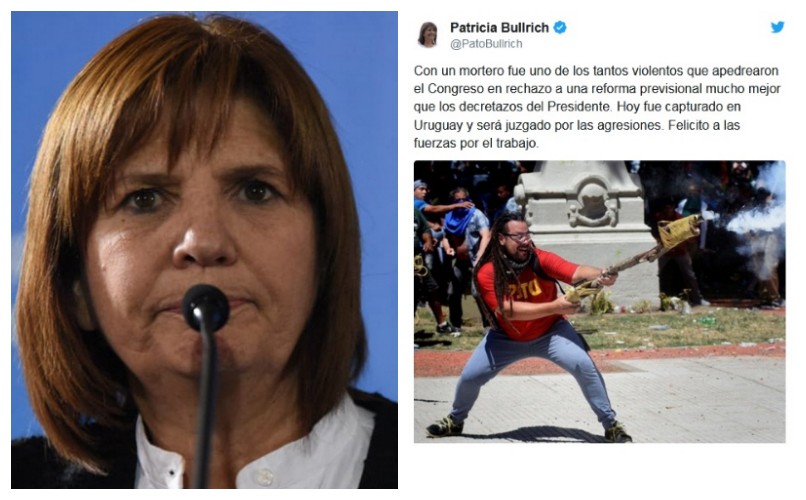 Patricia Bullrich festejó la detención del militante del mortero